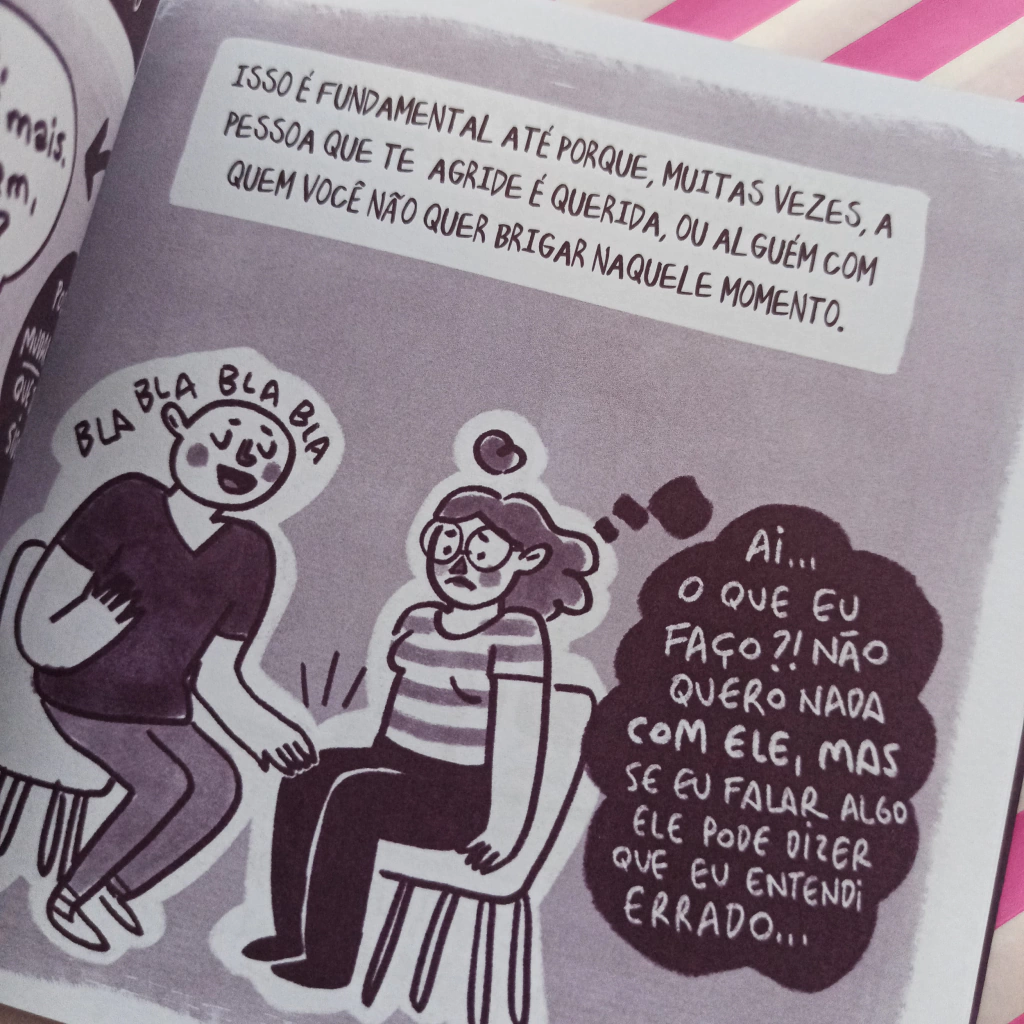 Pequeno Manual de Defesa Pessoal, de Helô D'Angelo, ajuda a responder à pergunta: como trabalhar a autodefesa e priorizar nossa segurança quando somos treinadas desde a infância a aceitar uma série de violências cotidianas? Helô fez uma oficina de defesa pessoal focada na população LGBTQIAP+ e em mulheres e transformou as aulas em quadrinhos, uma HQ didática e acolhedora.