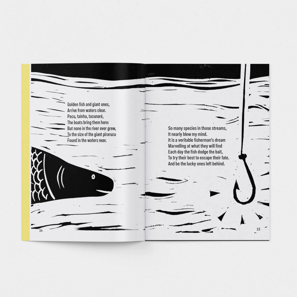 The publication was conceived during Leo Gasparine's cordel workshop, during DiaTipo Belém 2023, and if you read it out loud you will be teleported there.